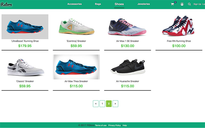 Features includes user sign in/up functionality, search function, admin access, shopping cart and set up database for users and products.